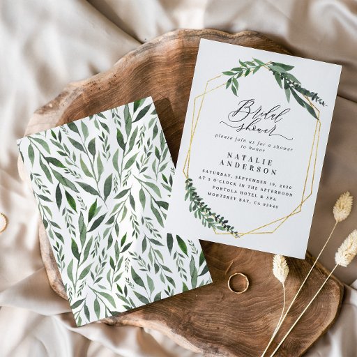 gold geometric green foliage bridal showerCriado por Stacy Speakman-Cooke