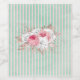 design de chique bonito e feminino apresenta um grande buquê de rosas cor-de-rosa e outros florais com folhas de ouro rosa sobre fundo de hortelã em apuros e listras rosa pálidas. Bonito para todos os tipos de festas e se reúnem de chás ricos a recepções de casamento.