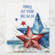 Rótulo De Garrafa De Cerveja Churrasco azul branco vermelho na praia