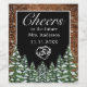Etiqueta de garrafa para despedida de solteira "Cheers". Madeira marrom rústica, fundo nevado e floresta nevada. Estilo country vintage aconchegante. Mais itens estão disponíveis neste estilo em nossa loja. Você pode editar o design ainda mais, alterar cores, fontes e adicionar texto extra clicando no link "personalizar ainda mais".