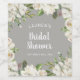 Rótulo de vinho floral personalizado para uma chuva de noiva ou outra ocasião. Com flores brancas em um fundo cinza. Complete seu tema com convites, placas, marcadores de favor e muitos outros da minha Coleção de Flores Brancas Neutras.