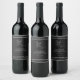 Mostre sua apreciação com estas garrafas de vinho de etiquetas personalizadas. Apresentando um branco no design preto com a mensagem "Obrigado, por comemorar conosco," junto com os marcadores para os nomes dos casais de casamento e a data do casamento.
