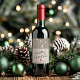 Padrão moderno de verde natalino com caligrafia "feliz natal" e personalizado com rótulos de vinho com seu nome.
