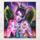 Esta é uma ilustração colorida, trivial, surreal pop de uma garota na praia, coquetel bebendo ou rabo-de-cavalo. Ela gosta de vibrações quentes no verão.