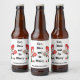 Etiqueta de Garrafa de Cerveja de Pickleball de Natal giro com Papais noeis jogando picleball em fundo branco. Coma, beba e seja feliz