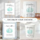 Essas lindas etiquetas de vinho de chá para bebês apresentam uma cor de água azul pastel de uma abóbora e "uma abóbora doce está a caminho", "chá de fraldas" e o nome da mãe escrito numa mistura de um roteiro de cinza mole e tipografia manuscrita.