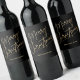 Feliz Natal em um falso roteiro de folha de ouro e seus nomes em letras quic, essas etiquetas de garrafa de vinho preto são na moda para presentes de Natal ou para etiquetar vinho servido em suas férias.