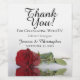 Estas lindas etiquetas de garrafa de vinho são a adição perfeita à sua celebração de casamento. A design apresenta uma rosa vermelha longa e solteiro, refletindo numa piscina de água com ondulações e ondas. A legenda diz: Obrigado por comemorar conosco. Há espaço para os nomes dos casais de casamento, a data do casamento e o tipo de vinho ou outro conteúdo da garrafa.