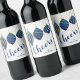 Crie seus próprios rótulos personalizados de garrafa de vinho para dar como presentes de Natal ou lembranças! Enfeites de árvore de Natal azuis escuros e dourados com seus detalhes em letras elegantes tornam seu presente de vinho diferenciado. Convites CORRESPONDENTES e mais em nossa coleção.