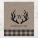 Farmhouse Rustic Burlap Deer Antlers Monograma Name - Apresenta Ruros Rústicos com seu monograma e nome. O fundo é uma burvolta natural rústica, acentuada com xadrez de búfalo.