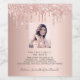 Pode ser usado na frente de uma garrafa, mas é destinado às costas. Para uma festa de despedida de solteira divertida. Personalize e adicione uma foto da noiva. Adicione seu texto, fatos divertidos, biografia sobre a noiva e seus nomes. Um fundo colorido em rosa dourado trendy decorado com gotas de glitter falso, visual de tinta pingando em rosa e rosa dourado.