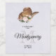 Etiquetas de fazer de vinho personalizadas com um design agudo criado com aquarelas com um chapéu castanho com um buquê de flores cor-de-rosa.