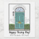 Feliz dia de fechamento! Decorado com uma porta azul. Adicione a uma garrafa de vinho ou vinho espumante para um belo presente do dia de fecho para amigos ou clientes imobiliários e hipotecas.