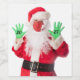 Um Papai noel humorístico 2021 em uma máscara e luvas de borracha.