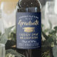 Adicione um toque personalizado à decoração da faculdade ou da festa de formatura de segundo grau com estas elegantes etiquetas de garrafas de vinho azul, branco e dourado. Design apresenta um fundo de aço inoxidável esfregado, tipografia moderna na moda, caligrafia de scripts manuscritos e uma mensagem personalizável lendo "Parabéns para nosso Formando". O texto na parte inferior inclui ano de aula, nome de escola e linhas opcionais para grau, tipo de bebida ou outras informações. Todo texto é simples de personalizar. Observe que o ouro é impresso a cor, não a folha metálica. Essas etiquetas fazem uma ideia de na moda festa de formatura e uma elegante adição à celebração do dia especial do formando. Felicidades!