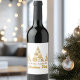 Um guião de ouro chico etiquetas de vinho da festa de Natal com seu nome familiar sob lindas árvores feitas de flocos de neve ouro sobre Feliz Natal. O feriado de tendências favorece um design artístico.