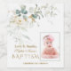 Arejado Folhagem Rosa Branca Foto Cruz Dourada Desenho de Batismo. Apresenta bela flor branca aquarela, folhagem arejada, folhas douradas e a foto do seu bebê. Use a ferramenta Personalizar para adicionar suas informações, fácil de substituir esta foto pela sua. Para itens correspondentes, visite minha Coleção de Fotos de Batismo.