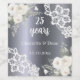 Etiquetas para o aniversário de 25 casamento, casamento prateado. Um fundo escuro e escuro, decorado com flores brancas, rosas e rendas. Personalize e adicione seus nomes e data.