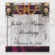 Esta design tem uma elegância rústica, mantendo-a um tema simples. fundo de madeira de casca com fita roxa, ferraduras com nós e buquês de flor selvagem com marcadores para o nome do casal e data do evento. Projetado para coordenar com a coleção "Gettin' Hitched - Horsferes, Ribbon & Lace". Para alterar os detalhes, clique em "Personalizar". Para mover o texto ou alterar o tamanho, a fonte ou a cor do texto, clique em "Clique para personalizar mais"