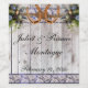 Esta design tem uma elegância rústica, mantendo-a um tema simples. fundo de madeira de casca com fita azul, rendas, ferraduras de nós e buquês de flor selvagem com marcadores para o nome do casal e data do evento. Projetado para coordenar com a coleção "Gettin' Hitched - Horsferes, Ribbon & Lace". Para alterar os detalhes, clique em "Personalizar". Para mover o texto ou alterar o tamanho, a fonte ou a cor do texto, clique em "Clique para personalizar mais"