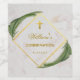 O texto está dentro de uma moldura quadrada de folha de ouro falso. Existem duas folhas de samambaia em torno da moldura dourada e uma cruz dourada (falsa) acima do texto, dentro dela. O fundo é de mármore branco. Todo o texto é dourado. O nome é escrito em uma elegante fonte caligráfica. A samambaia é da página de título de um livro vintage do século 19 "Illustrations of Himalayan Plants", agora em domínio público. Este é um design neutro em termos de gênero, podendo ser usado tanto para meninos quanto para meninas na primeira comunhão.