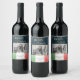 Esta elegante etiqueta de vinho de férias apresenta um tema de Natal italiano. A saudação a Buon Natale, que é Feliz Natal na Itália, é impressa no topo com uma letra de folha de ouro. Um ornamentado correspondente a um quadro dourado borda o rótulo. Uma imagem esmaecida da bandeira italiana é impressa na parte inferior. Um exemplo de foto da família é impresso no centro que você pode personalizar para incluir sua própria foto ou imagem personalizada. Um tipo de vinho e um ano são indicados na faixa branca da bandeira.