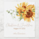 Essas etiquetas românticas para garrafa de vinho de casamento apresentam um design floral. O fundo é simples e elegante, branco com girassóis aquarela dourados. Um delicado buquê silvestre é retratado no topo, com os nomes do casal e a data do casamento impressos abaixo.