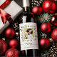 Este rótulo de vinho de férias apresenta as tintas de cor aquosa, os ramos de pinheiro, o eucalipto e as folhas verdes, com a menção "Feliz Natal". Personalize isso alterando a imagem com sua própria foto e texto.