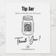 Crie seu próprio adesivo de jarro personalizado com nosso modelo de carregamento moderno e limpo. Perfeito para colecionar dicas de funcionarios, seja um vendedor de festivais, um estábulo de comida de mercado, ou um tradicional compro de bistrô, bar, sanduíche ou café. Basta clicar em 'personalizar esta design' para carregar o logotipo da sua empresa, as opções de Aplicativo de pagamento para o código QR, as teclas de mídia social e o endereço da Web. Uma solução rápida e fácil para o seu funcionarios conseguir as dicas bem merecidas! Disponível em uma faixa de cores de fundo. Para obter a flexibilidade máxima, você pode mudar facilmente a cor do plano de fundo, a cor do texto e o estilo do texto na Ferramenta Design do Zazzle - basta pressionar "editar usando a ferramenta design". Combine as cores da marca exatamente para o sinal perfeito!