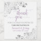 Essas etiquetas de vinho apresentam um design elegante com filigre prateado de folha de alumínio falso e friável nos cantos e uma caligrafia roxa ou lavanda em fundo branco. O texto diz "obrigado para comemorar conosco" com espaço para os nomes do casal, a data do casamento e o conteúdo da garrafa. Adição perfeita a uma bolsa de casamento para membros da sua festa de noiva ou convidados especiais, ou até mesmo apenas para a sua recepção.