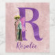 A letra R do shimmer roxo com fada de rico rosa-rosa fantasiada de ator vintage com recorte de fotos e texto roxo personalizável pode ser usado para adicionar um nome ou mensagem. (Ou remover completamente para deixar design como uma letra/monograma ilustrado.) Uma compilação encantadora para aqueles que amam campy arte alterada num fundo rosa angustiado