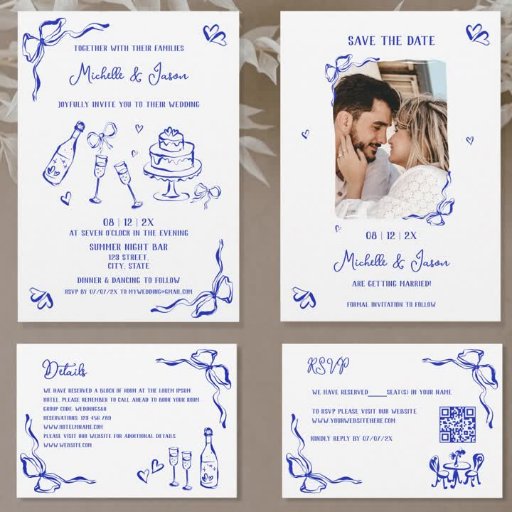 Mão única azul branca Desenhada e manuscrita Contemporânea Diversão Francesa Guarde a data com um quadro de arco, um trabalho de arte de tendência caprichosa para o seu casamento francês por Savanamm