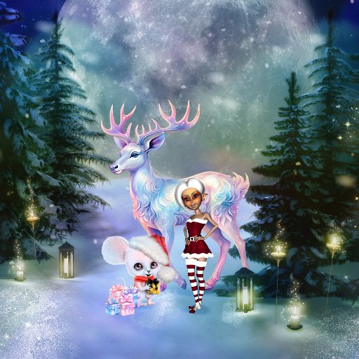 Maravilhosa rena de fantasia com elfo fofo numa paisagem de inverno