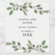 Estas simples e modernas etiquetas de vinho de casamento contêm folhas verdes, em aquarela, simples, em um fundo branco limpo com texto preto moderno.