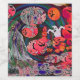 This vibrant artwork bursts with Halloween excitement, featuring a spooky yet playful array of jack-o'-lanterns and ghostly figures. The central figure, a ghoul draped in eerie fabric, stands amidst swirling, colorful patterns that add a dynamic, almost hypnotic, effect to the scene. Surrounding the ghost are various pumpkins with grinning faces, stacked creatively, contributing to the overall sense of fun and festivity. This lively, surreal design would make a perfect fit for Halloween-themed products, infusing any item with an imaginative, festive spirit.