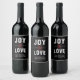 Black and White Modern Joy & Love Script Christmas Holiday Label (Etiqueta de vinho de Natal). Clique no botão "Personalizar" para alterar fontes, tamanhos e cores de um produto exclusivo de um tipo.