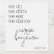 Nós Fazemos, Nós Bebemos, Nós Comemos, Nós Dançamos - Um design moderno e leve para um casamento. Personalize esses rótulos de vinho de casamento com o nome da noiva e do noivo, além da data do casamento. O design simples em preto e branco combina com muitos temas de casamento. Um visual minimalista em preto e branco com uma fonte sem serifa fina e uma fonte de caligrafia leve como destaque. Um design moderno para um casamento ou uma festa de aniversário.