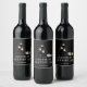 As palavras Feliz Natal em caracteres retrorreflectores, um esboço branco com ornamentos e presentes de folha de ouro falsos são apresentadas nestes rótulos de garrafa de vinho preto personalizados com o nome da sua família. Na moda para qualquer ocasião de Natal ou presentes. CORRESPONDENDO a itens na nossa loja.