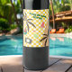 Faça uma festa de verão inesquecível com este design branco amarelo-limão que ilustra palmeiras, uma prancha de surfe, sorvete, melão e câmera.