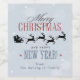 Rótulos de garrafas de natal festivo. Uma cinza sutil com flocos de neve. Rico com letra de tendência que diz: Feliz Natal e Feliz ano novo. Com um papai noel preto de silhueta no seu trenó sendo puxado por sua rena voando pelo céu. Personalize com seu nome.