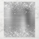 Faux glitter prateado cintilante feminino na borda superior e inferior, sobre uma folha de ombre metálico estilo aço inoxidável falso.