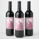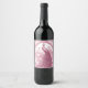 Ilustração vindimada de pavão rosa e etiqueta decorativa de vinho de fundo.