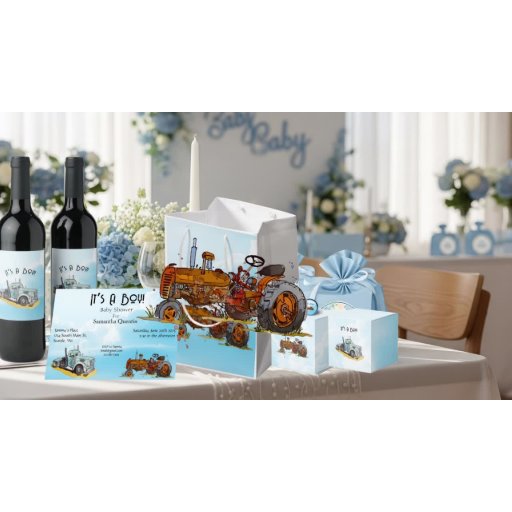 Este rótulo de vinho apresenta um design charmoso e caprichoso perfeito para um chá de fraldas. O gráfico exibe um trator de laranja antigo pintado com aquarela, acentuado com o texto "É um menino". Este rótulo é uma forma maravilhosa de acrescentar um toque especial às garrafas de vinho para servir aos seus hóspedes ou para dar um favor especial.