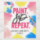 Inicie sua festa de pintura e vinho de solteira com um rótulo de vinho personalizado. Personalize com o nome da noiva e a data da festa para um toque pessoal divertido. O design inclui a tipografia "pinte beba repita" e respingos de tinta colorida, além de uma paleta de tinta e pincéis pintados à mão.