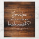 Você será a minha proposta de Bridesmaid sobre madeira de celeiro rústico. Bom para o casamento no campo.