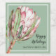 Uma bela mão pintada de cor d'água rosa protea floral floral em um fundo verde da casa da moeda, PERSONALIZAR essas etiquetas de garrafa de vinho para favoritos para festas, presentes de férias ou para servir na sua festa. MUDE a cor de fundo para qualquer coisa! CORRESPONDENTE a itens em nossa loja —> http://bit.ly/2TLWeM5 <—