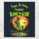 Sob um pôr do sol radiante, uma alienígena verde muscular é alta, unida por figuras enigmáticas menores. O céu colorido brilha nas águas próximas, criando uma atmosfera de maravilha e intrigas. A cena combina mistério extraterrestre com uma beleza natural impressionante em uma exibição imesquisitável e caprichosa.