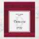 Etiquetas de fazer de vinho personalizadas com fundo vermelho decorado com espirais elegantes e designs ornamentais ao longo das fronteiras. Um quadro quadrado em camadas acima com seu dentro de texto.