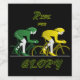 "Ride For Glory" captures the electrifying essence of a competitive bike race, showcasing a powerful moment of competition and determination. Around the image of a two-rider photo finish is the bold phrase "Ride For Glory" emblazoned in dynamic shades of yellow and green, inspired by the iconic leader and sprinter jerseys. The cyclists, locked in a fierce sprint to the finish, are drawn in motion with bold strokes that emphasize speed, grit, and athleticism. Image that behind them, stylized representations of the yellow jersey and green jersey billow like flags of victory, highlighting the dual pursuit of overall dominance and sprint supremacy. The illustration’s color palette is energized with professional-race-inspired hues—sun-bright yellow, lush green, and jet black outlines — creating a visual tribute to elite performance and high-stakes racing.