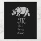 Um estilo de selo, excelente rinoceronte índio do lado. Esse mamífero grande também é conhecido como rinoceronte unicórnio e só tem um buzino. Abaixo do animal está um texto que diz "M", o m é pequeno para monograma e pode ser personalizado para suas iniciais.